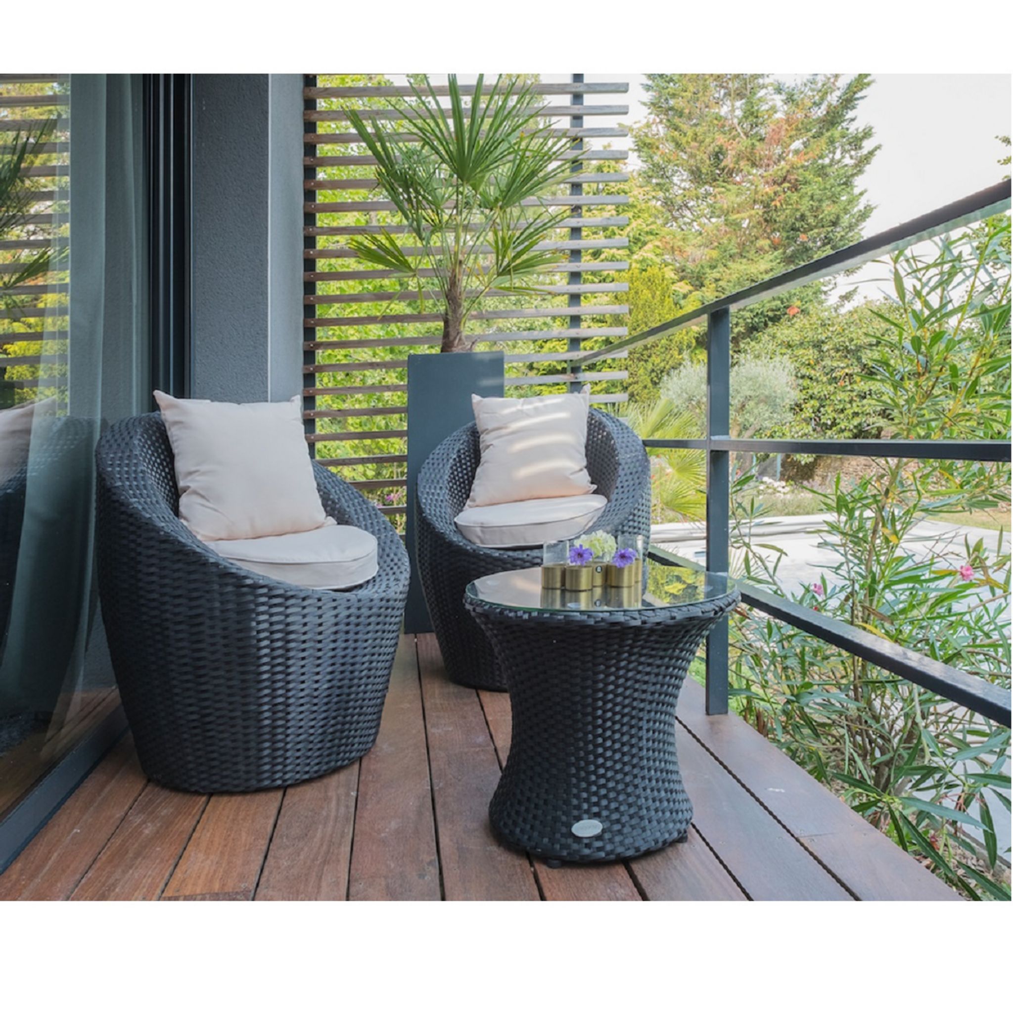 Salon bas de jardin - 2 places - Aluminium/résine tressée - Noir - TOTEM