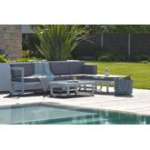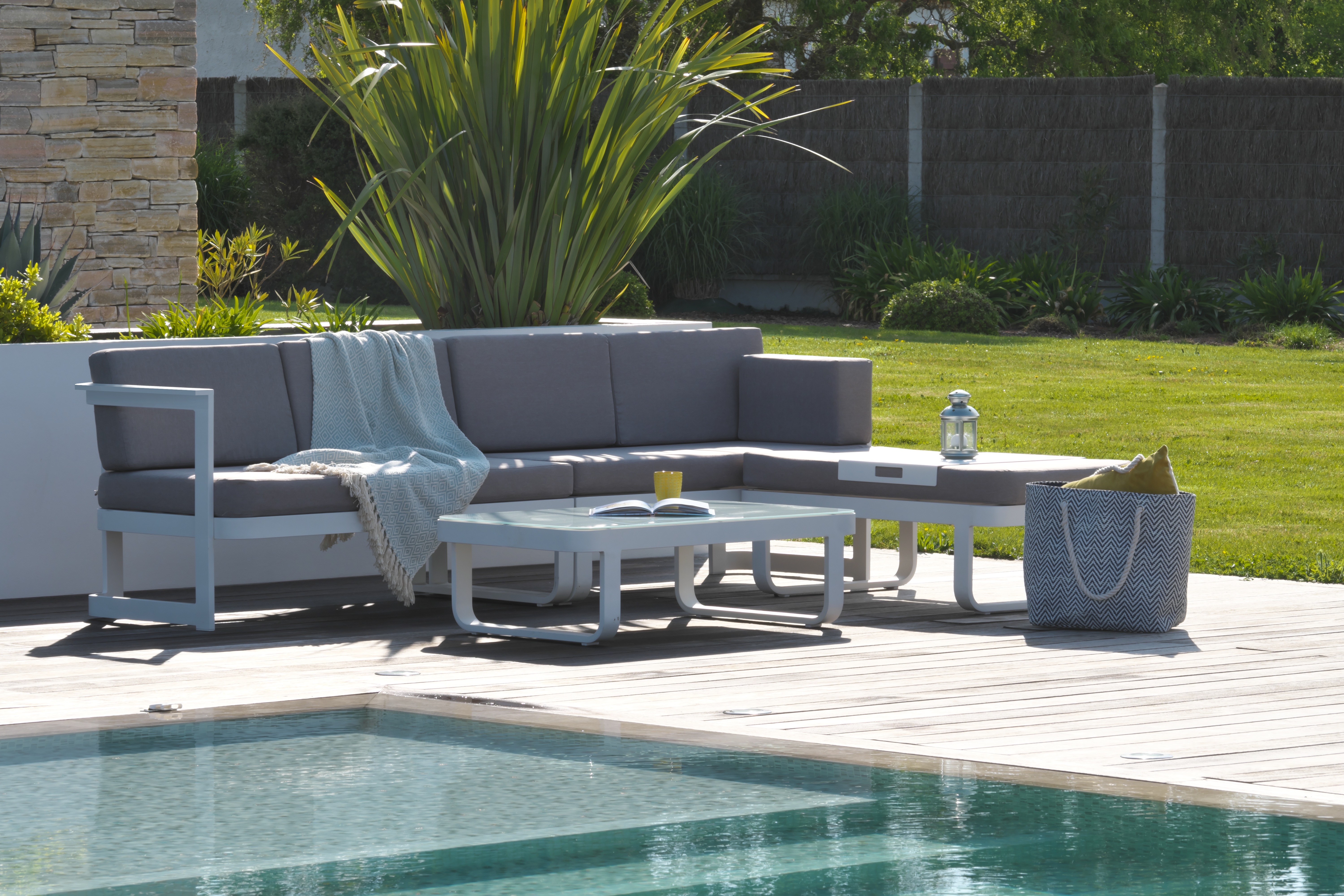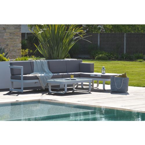 Ce salon bas de jardin BARCELONA trouvera aisément sa place dans votre jardin ou terrasse ! Ce salon de jardin est composé d'une table basse, de 2 canapés et d'un pouf en aluminium blanc pour plus de robustesse. A la fois design et élégant, ce salon bas de jardin BARCELONA est polyvalent et peut se positionner comme vous le souhaitez (les canapés peuvent se mettre en face à face). Pouvant accueillir jusqu'à 6 personnes, ce salon de jardin procure un style contemporain très tendance à votre maison !