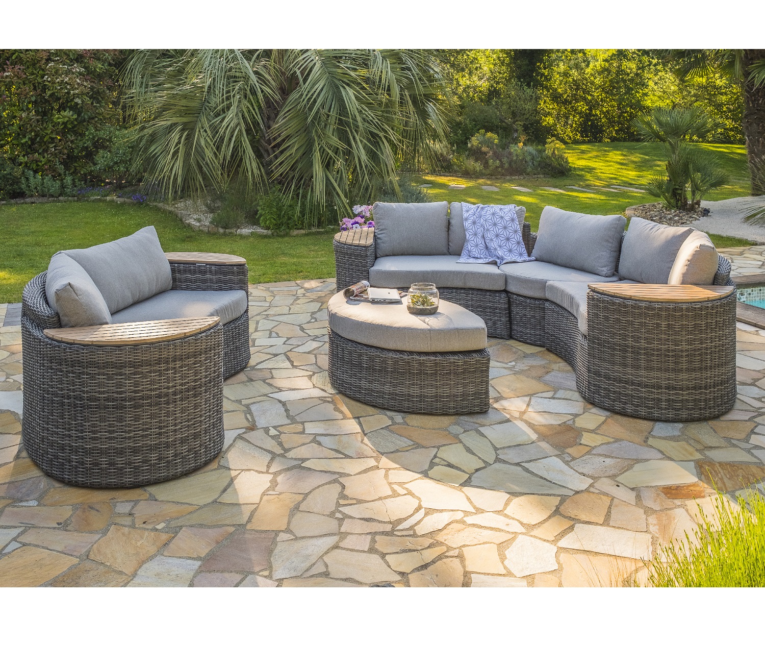 Salon bas de jardin 8 personnes en résine tressée NOUMEA - GRIS