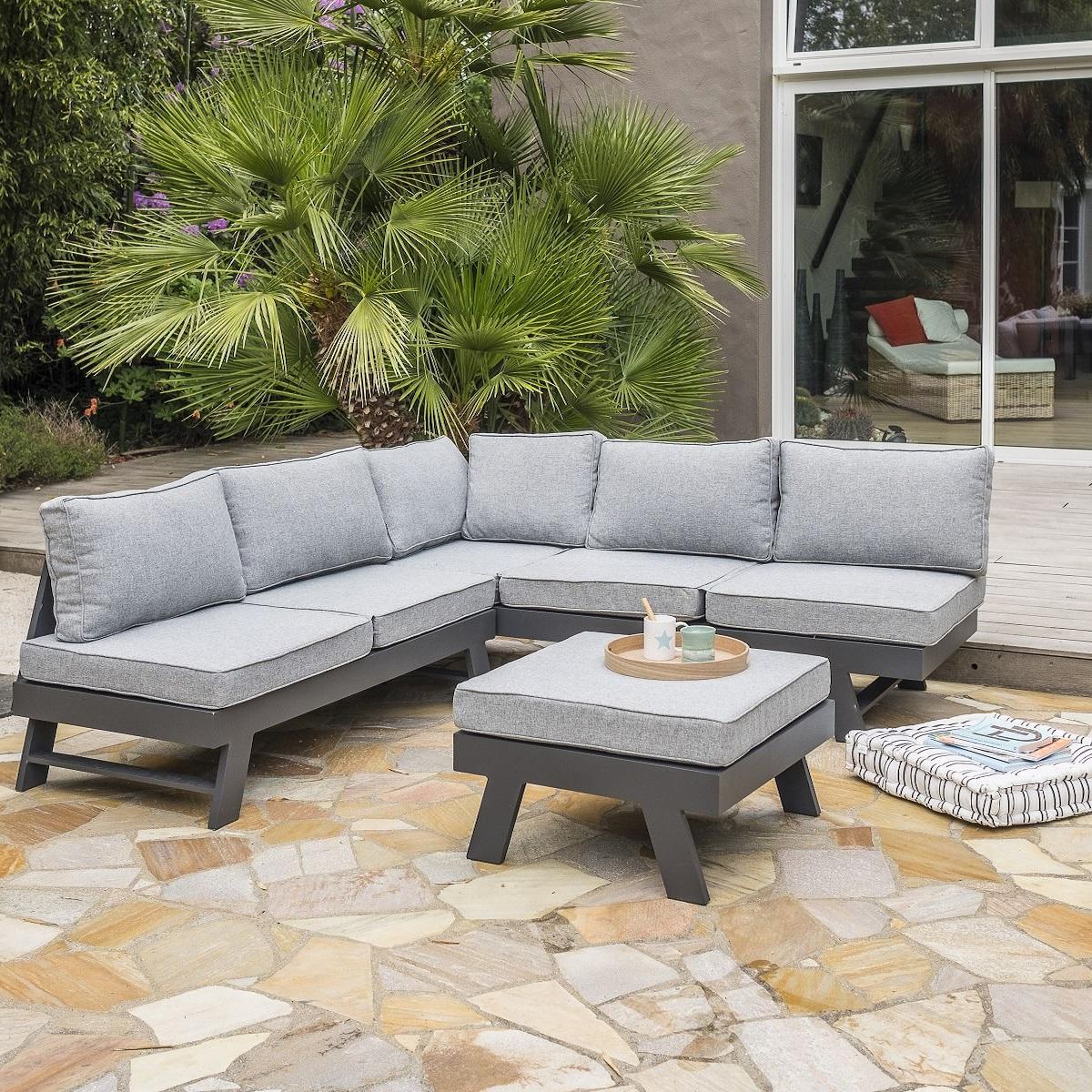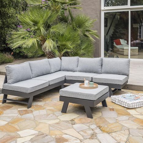 Salon bas de jardin en angle - 5/6 places - Aluminium - Anthracite