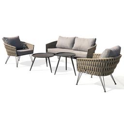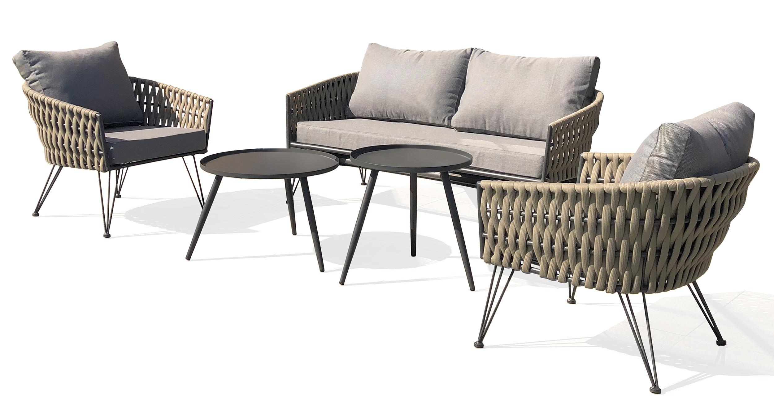 Salon bas de jardin en corde tissé taupe et anthracite 4 places CAPRI
