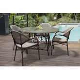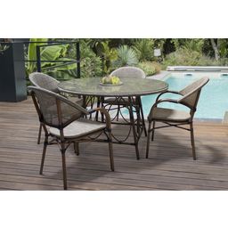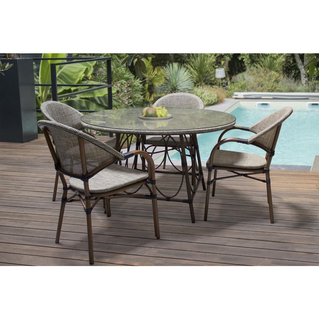 Table de jardin D125cm aluminium marron - 4 fauteuils empilables