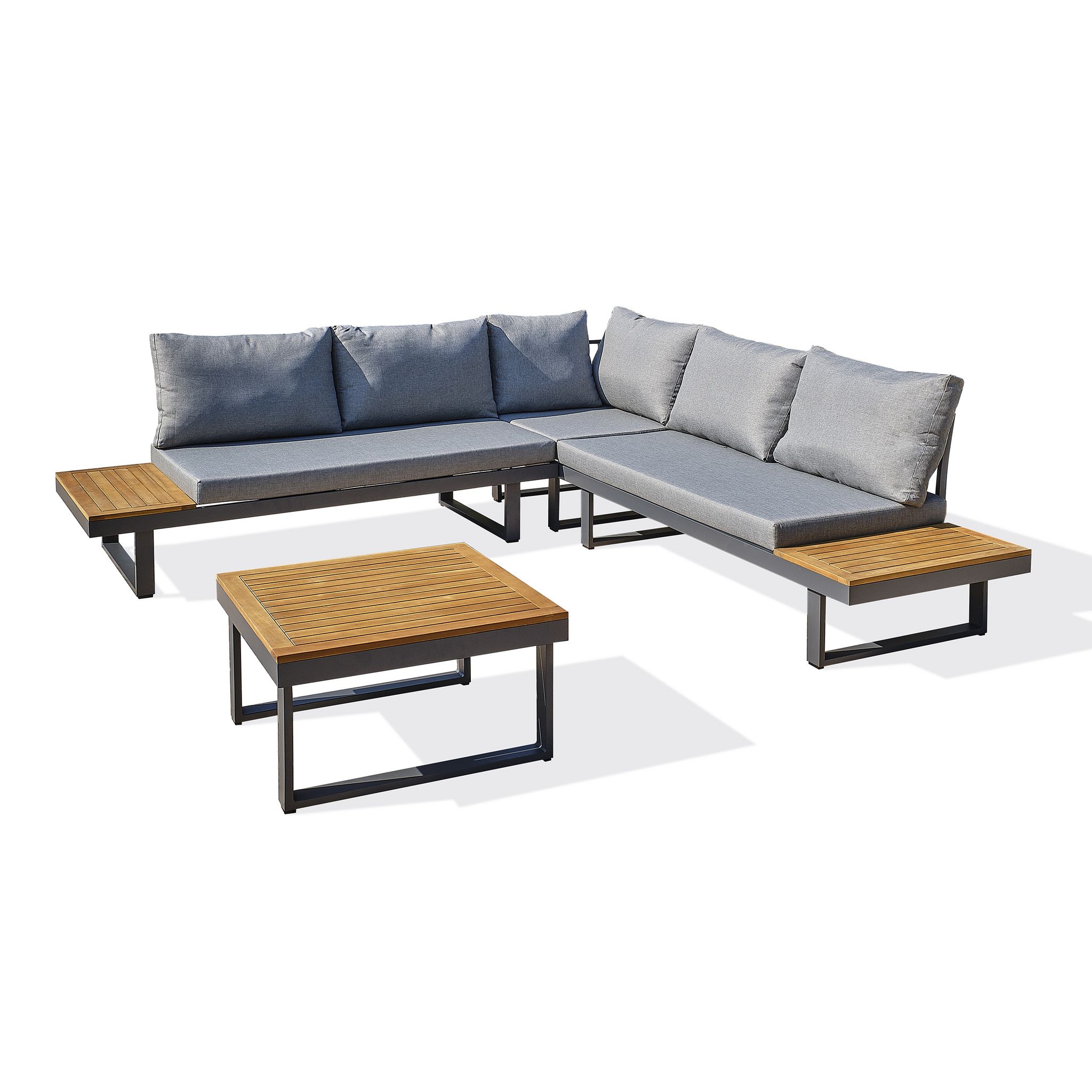 Salon de jardin 5 places bois d'acacia et aluminium gris anthracite MIYAKO