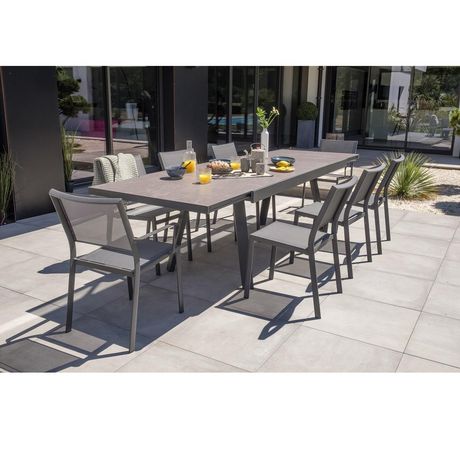 Plateau céramique - 6 chaises - 2 fauteuils - Table de jardin 200/300x96cm