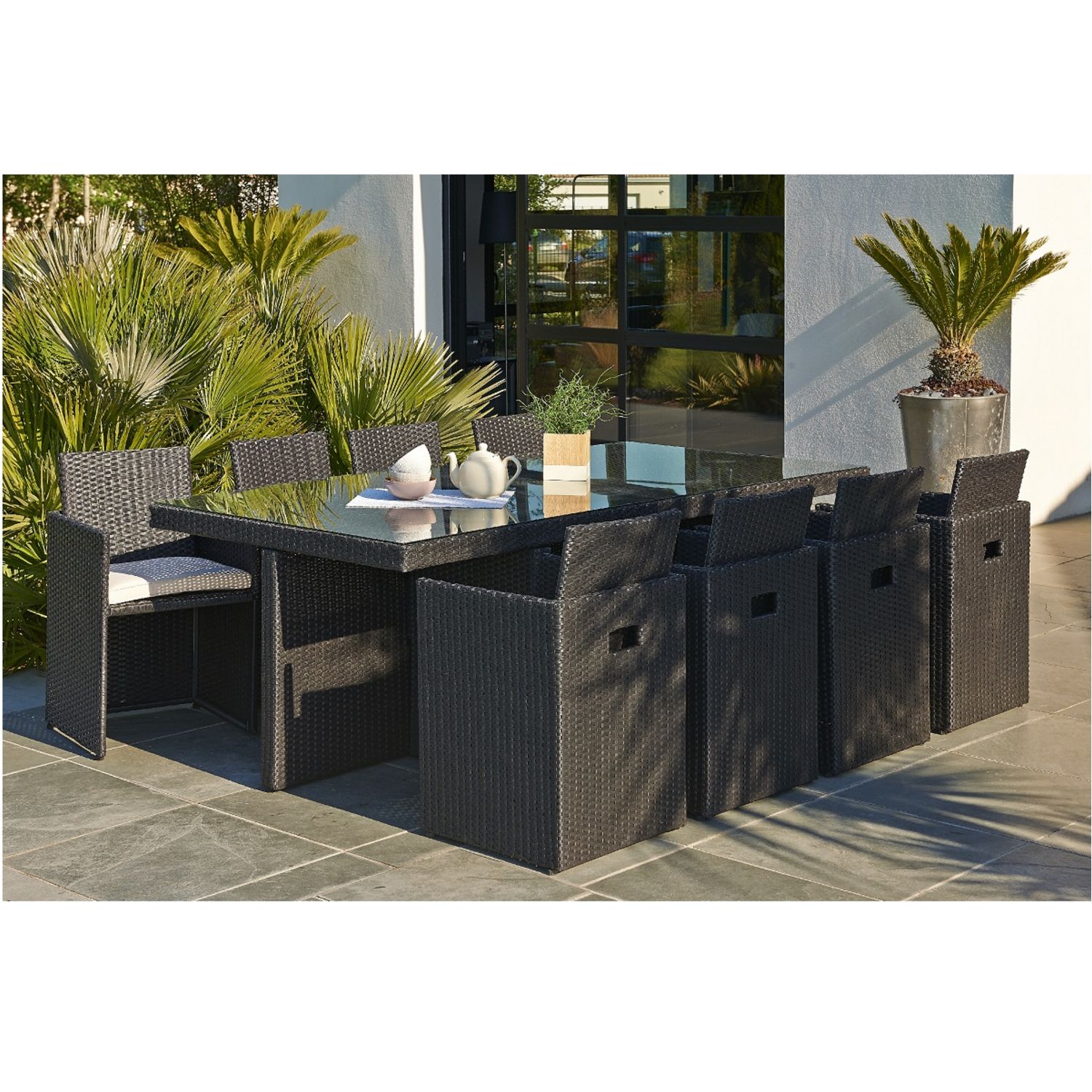 Salon de jardin encastrable 8 personnes chocolat GARDEN