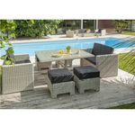 2 canapés de 2 places - 4 poufs - Table en aluminium, résine tressée