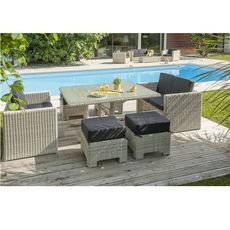 Salon de jardin encastrable - 8 places - Aluminium - gris crème - OCEANE