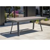 L’alliance parfaite de l’aluminium gris anthracite de la structure et d’un plateau non rayable en ce?ramique sur verre font de cette table de jardin l'allié des beaux jours ! La rallonge inte?gre?e permet de be?ne?ficier d’une table de jardin STOCKHOLM de 3 me?tres pouvant ac
