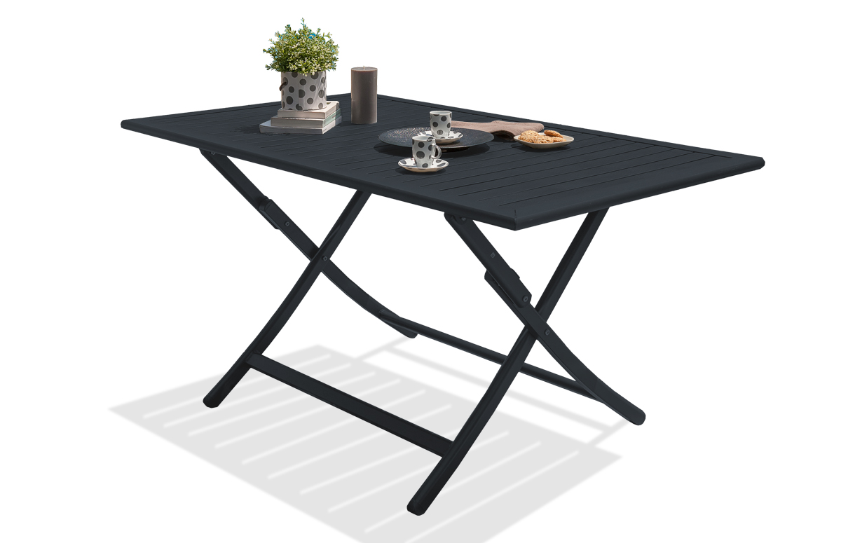 Table de jardin pliante 140x80cm aluminium gris anthracite MARIUS