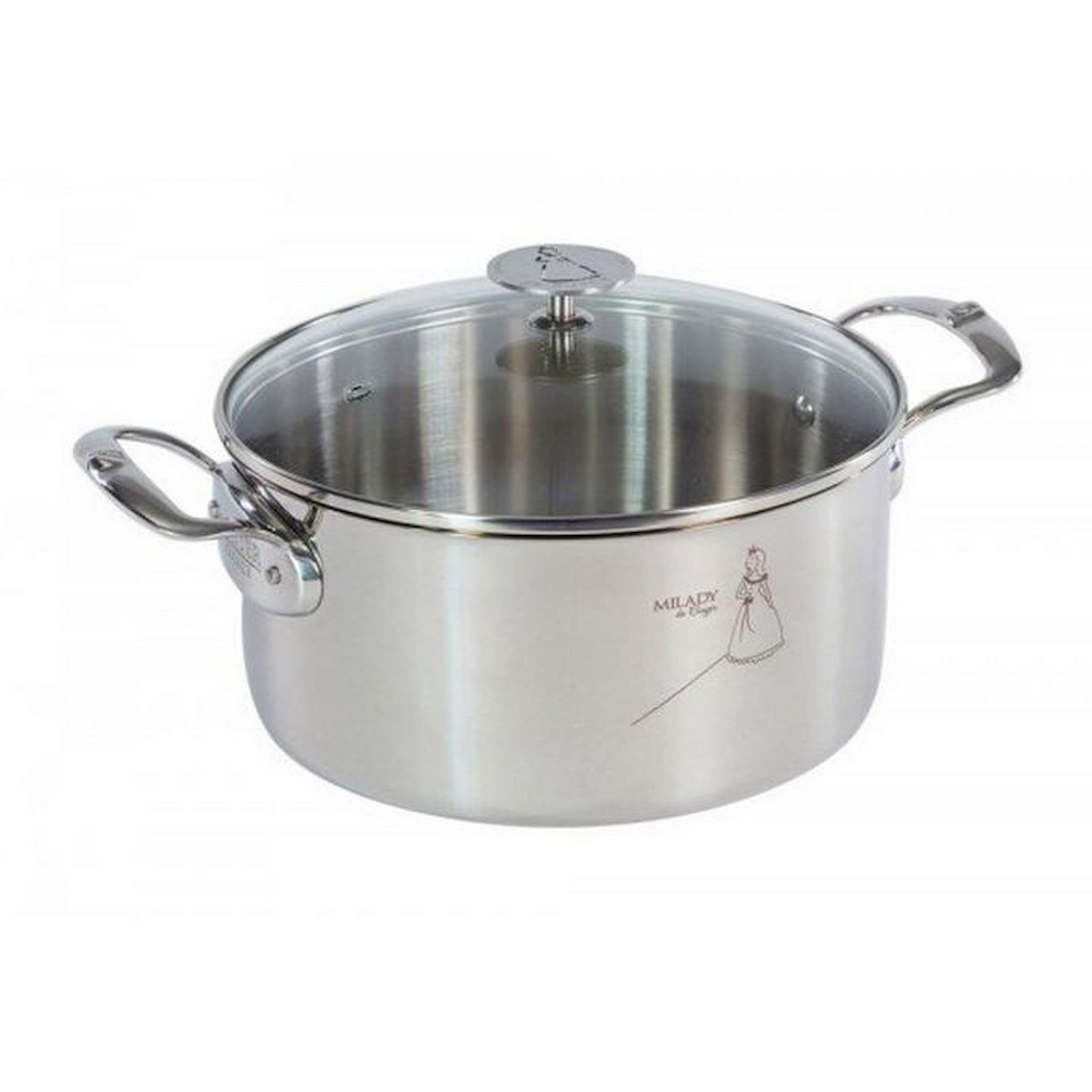 De Buyer 3427.20 Le faitout Milady De Buyer 3427.20 est un ustensile robuste, indéformable et durable. Jupe en acier inoxydable AISI 304, sans angle vif avec polissage miroir haut de gamme. Fond sandwich épais (7mm) : compatibilité avec l'induction et diffusion homogène de la chaleur sur tout le fon