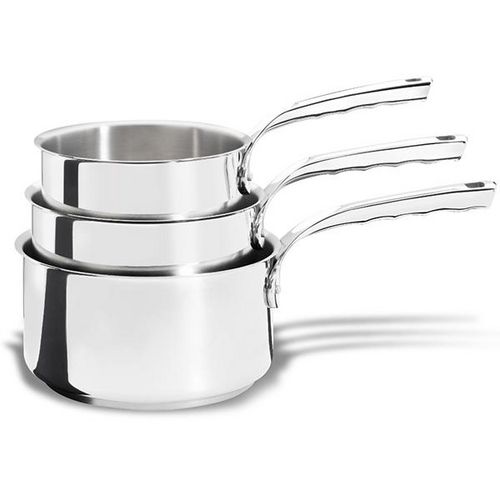 De Buyer 3410.03 La batterie de cuisine 3410.03 de DE BUYER est de qualité professionnelle en acier inoxydable. Elle se pare d'une nouvelle queue en fonte d'inox solidement rivetée, une exclusivité créée par de Buyer qui allie esthétique, ergonomie et solidité. Les casseroles 3410.03 possèdent un fo
