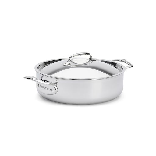 De Buyer 3741.28 Sauteuse à bord verseur droit, idéal pour sauter les petits légumes et les morceaux de viande.Ustensile indéformable en matériau multicouche : alliance d'aciers inoxydables à l'extérieur et d'aluminiums à l'intérieur.Matériau hyper réactif : montée très rapide en température et arrê