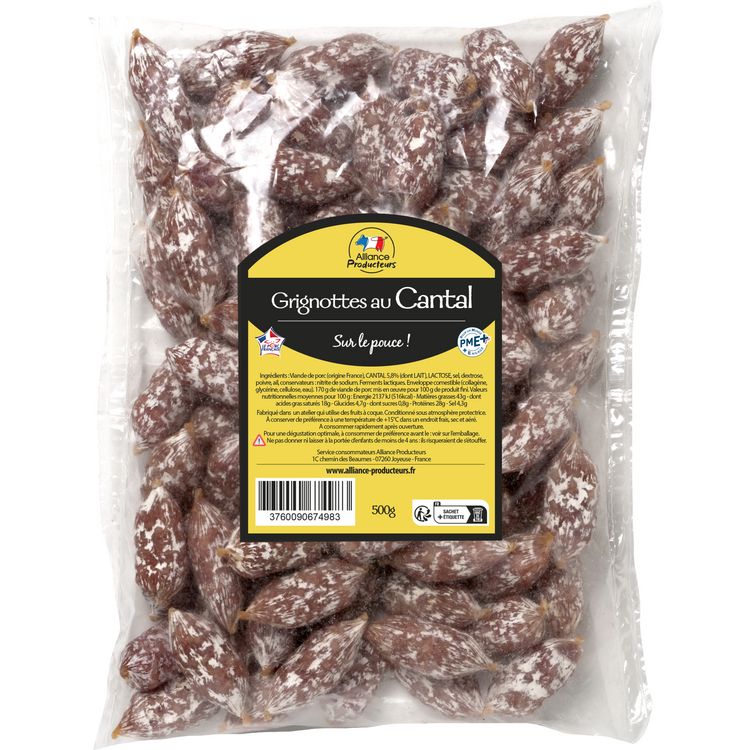Craquez pour ce format généreux avec les grignottes artisanales au Cantal. L’association d’une recette à l’ancienne, des formats mini et d’un fromage à pâte pressée non cuite révèle un produit en bouche qui saura vous surprendre pour vos apéros entre amis !