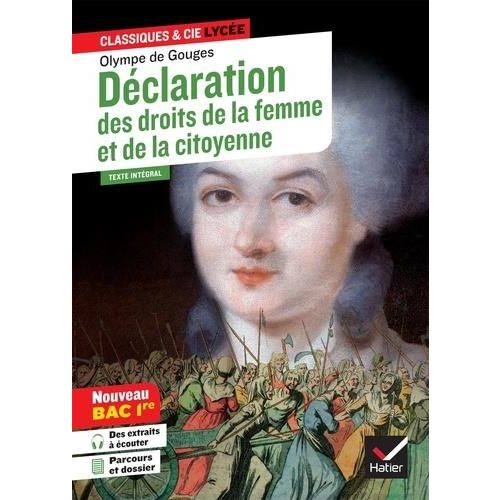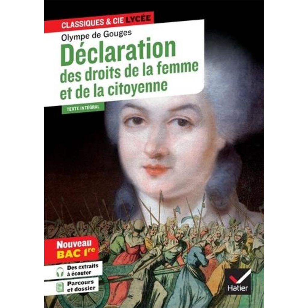 Le célèbre texte d'Olympe de Gouges au programme des 1res générale et technologique, suivi du parcours littéraire Ecrire et combattre pour l'égalité . Dans une édition spécialement conçue pour faciliter la préparation au nouveau bac de français. Le texte de la déclaration En 1791, en réponse à la déclaration de 1789 des droits de l'homme et du citoyen, Olympe de Gouges rédige la déclaration des droits de la femme et de la citoyenne. En affirmant que les femmes ont les mêmes droits que les hommes et en revendiquant l'amélioration de leur condition, l'autrice signe le premier texte ouvertement féministe de l'histoire. Le parcours Ecrire et combattre pour l'égalité De Beaumarchais à Chimamanda Ngozi Adichie, 12 textes qui témoignent de l'engagement d'écrivains en faveur de l'égalité, contre les différentes formes de discriminations. Le dossier Toutes les ressources utiles au lycéen pour étudier l'oeuvre dans le cadre des nouveaux programmes : - un avant-texte pour situer l'oeuvre dans son contexte - au fil du texte, la rubrique Des clés pour la lecture linéaire - après le texte : - des fiches de synthèse sur l'oeuvre et le parcours - des sujets guidés pour l'écrit et l'oral du bac français - des fiches de méthode récapitulatives Des prolongements artistiques et culturels 5 oeuvres visuelles, témoignant de l'engagement des consciences en faveur de l'égalité, et des outils pour les analyser. Et un guide pédagogique sur www. editions-hatier. fr En accès gratuit, réservé aux enseignants, il inclut tous les corrigés : des questionnaires au fil du texte, des sujets de bac et des lectures d'images.