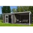 L'abri de jardin Eden comporte une pergola adossée pour aménager un espace détente ou abriter du matériel. Un espace intérieur fermé permet de stocker vous outils ou créer un atelier. Son toit plat lui donne un look plus contemporain. Le chalet est en sapin du nord. L'abri est équipé d'une double po