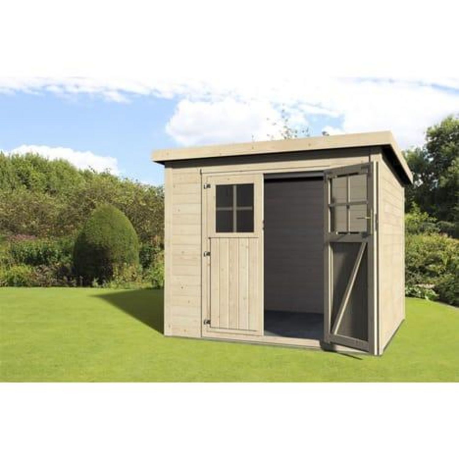 En savoir +L'abri de jardin en bois Durack permet de ranger facilement tous vos outils ou de créer un atelier dans votre jardin. Il est constitué de planches sapin du nord de 19mm avec double entaillage. Le montage se fait par emboîtement des planches les unes dans les autres. La structure est composée de bois de sapin du nord naturel. Elle se ferme par une double porte avec vitres en PVC et dispose d'un verrou. Le chalet est livré en kit et est à monter soi-même.