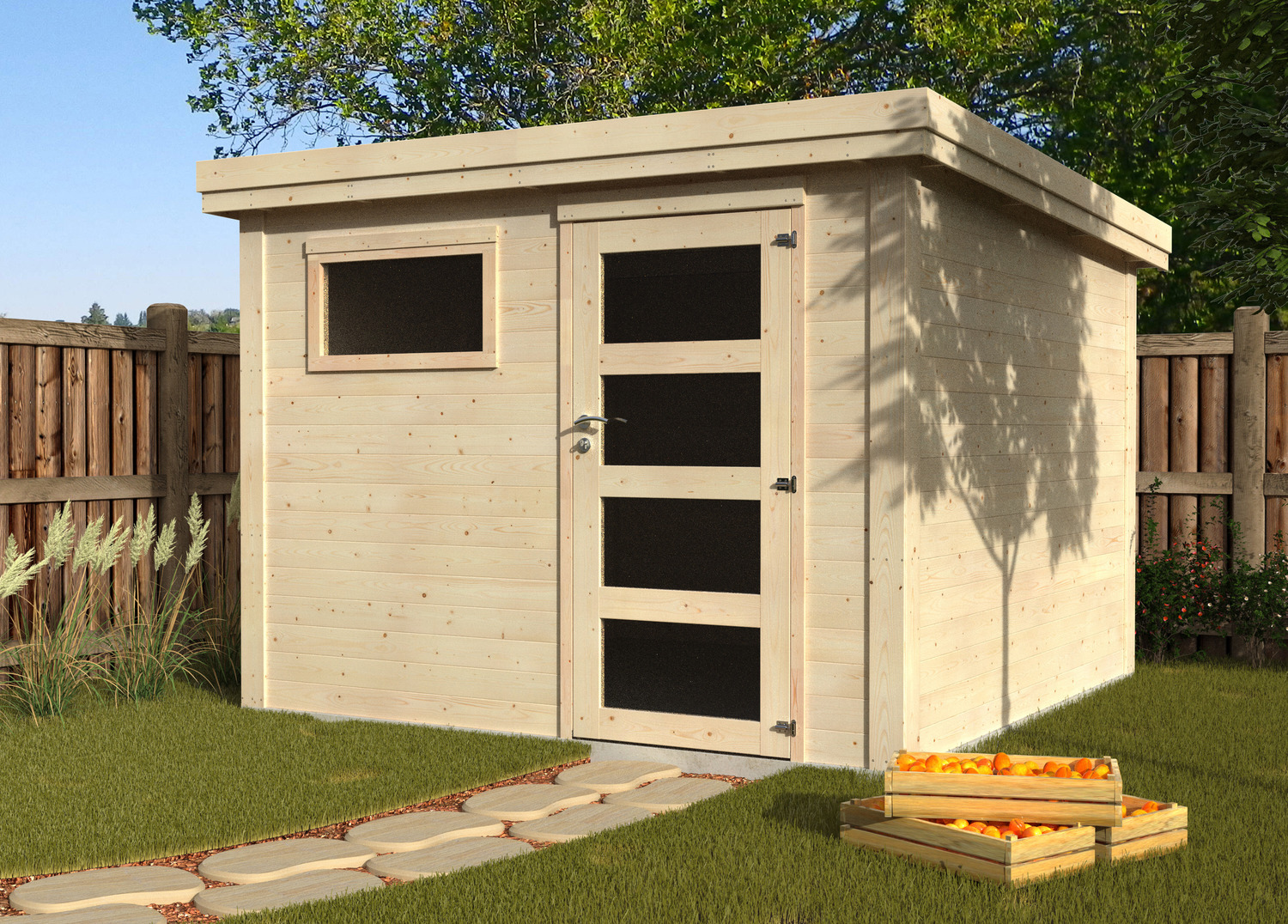 Chalet de jardin en bois moderne 28mm, madriers massif à visser su poteau d'ange