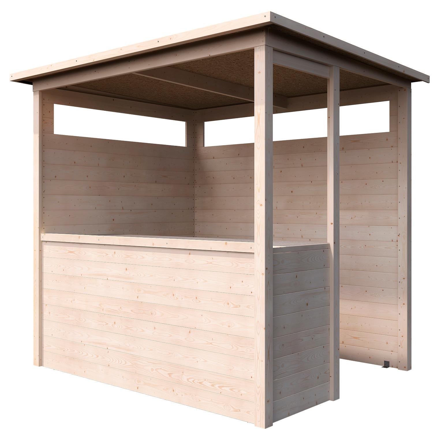 Découvrez la Cuisine d'été Safran en Sapin du Nord, élégante et pratique. Assemblée avec des profils de 19mm fixés sur des poteaux d'angle, elle dispose d'un plateau spacieux et d'une étagère pour une organisation optimale. Sa toiture mono-pente vers l'arrière ajoute une touche moderne à votre espace extérieur. Un choix parfait pour allier style et fonctionnalité dans votre jardin.