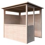 Découvrez la Cuisine d'été Safran en Sapin du Nord, élégante et pratique. Assemblée avec des profils de 19mm fixés sur des poteaux d'angle, elle dispose d'un plateau spacieux et d'une étagère pour une organisation optimale. Sa toiture mono-pente vers l'arrière ajoute une touche moderne à votre espac