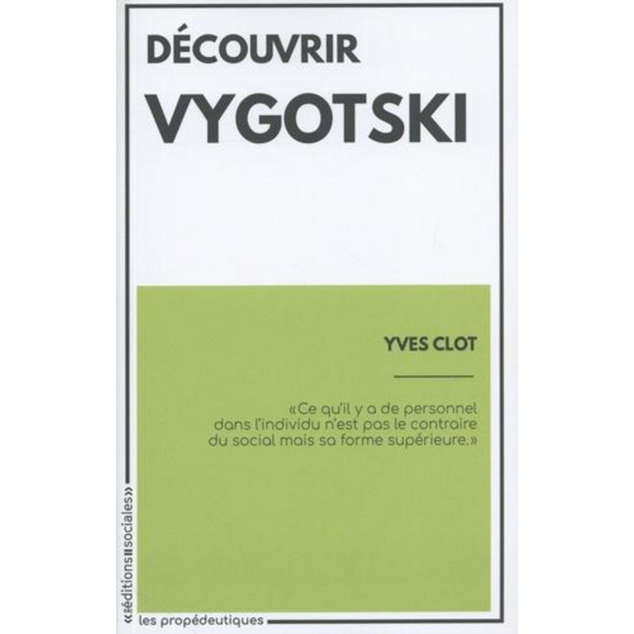 Découvrir c'est laisser de côté les formules et les simplifications pour se confronter directement aux textes. Sur une autrice, sur un auteur, sur une question, la collection Découvrir présente onze textes, commentés et mis dans leur contexte, proposant au lecteur des pistes pour aller plus loin. Les textes de Lev Vygotski (1896-1934), rassemblés ici explorent ses principaux concepts et ses méthodes en psychologie : l'histoire du développement, l'outil et le signe, le geste indicatif, les deux unités de base d'analyse que sont la signification et l'éprouvé , une observation clinique comparée de trois enfants, l'imagination, le jeu et l'art, et enfin les rapports entre conscience et inconscient.