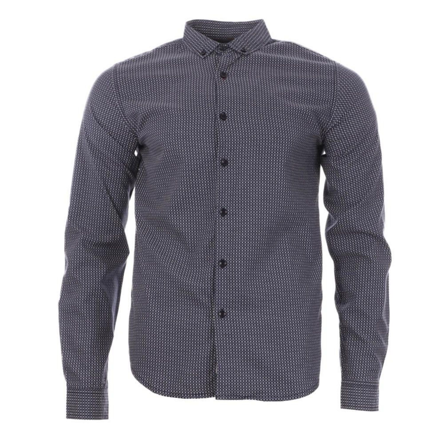 Craquez pour la chemise homme Deeluxe !Manches longuesCol chemiseCoupe regular fitFermeture à boutonsColoris : marineImpriméComposition : 55% coton , 45% viscose