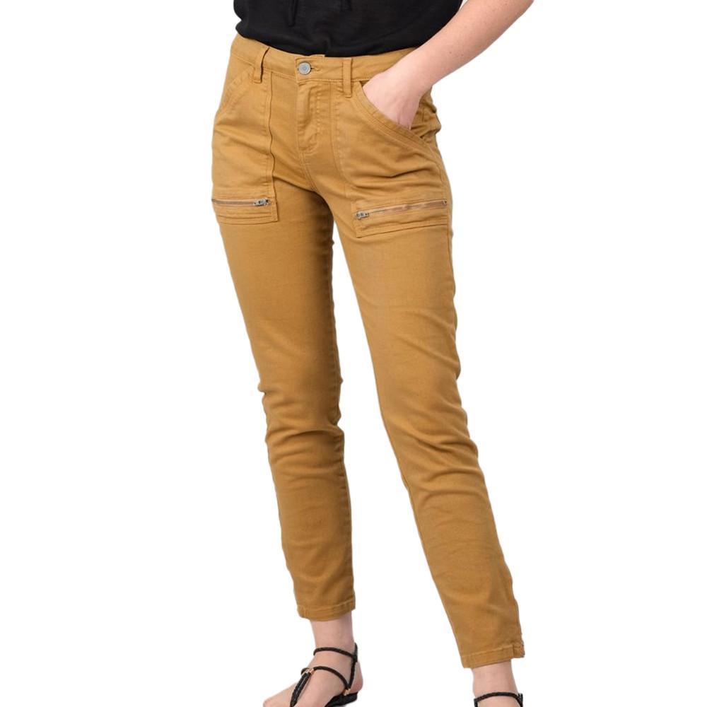 Craquez pour le pantalon femme de la marque Deeluxe Coupe slim Plusieurs poches Zip sur les chevilles Coloris : Camel Composition : 98% coton , 2% élasthanne