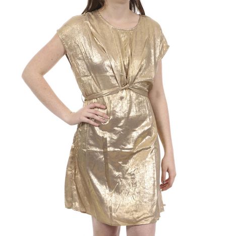 Optez pour la robe femme de la marque Deeluxe parfaite pour les fêtes Manches courtes Col rond Ceinture à la taille avec nœud dans le dos Coloris : Doré Composition : 100% polyester