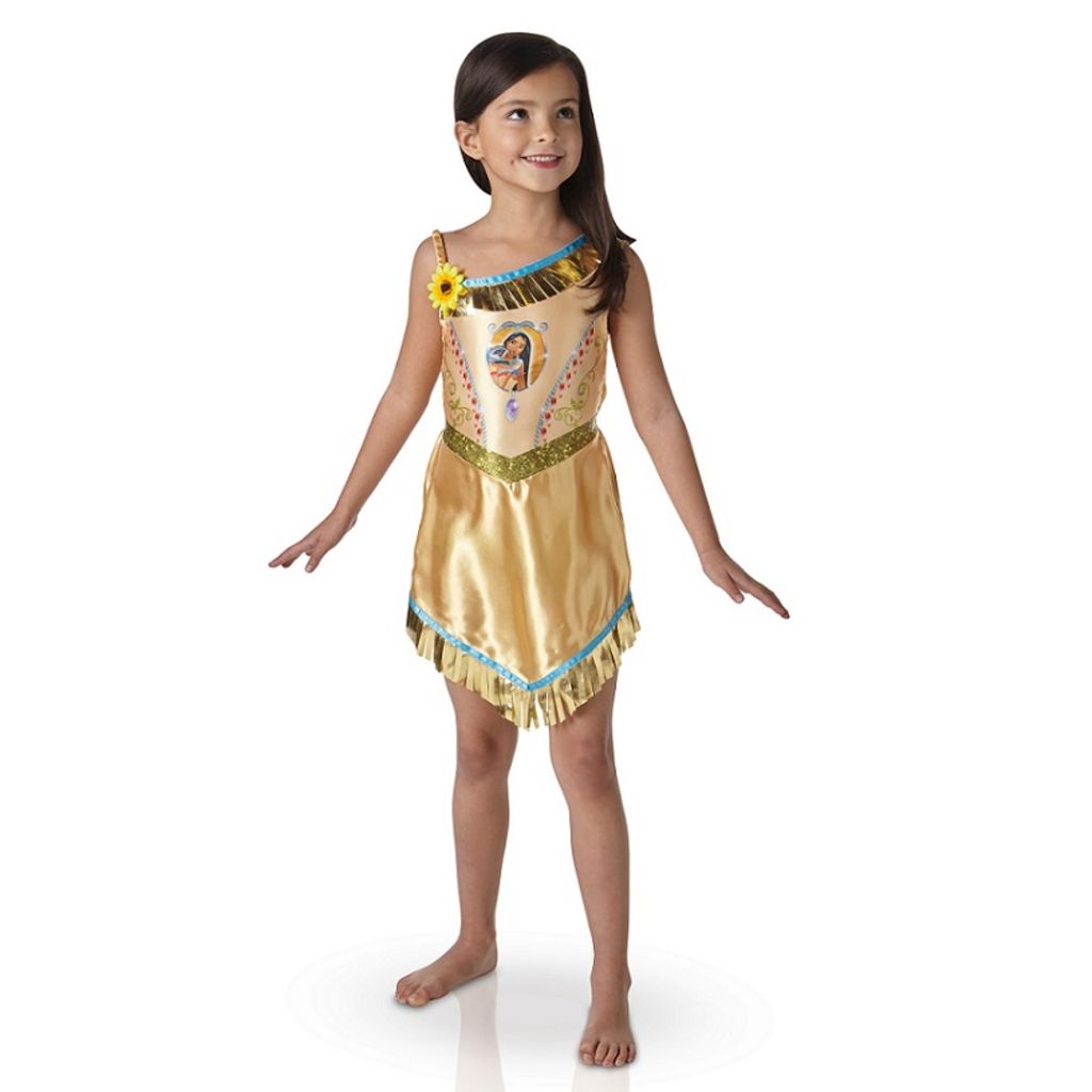 Grâce au déguisement Pocahontas, deviens une vraie princesse Disney ! En enfilant cette jolie robe jaune ornée d'une fleur et de l'image de de Pocahontas revis ton dessin animé préféré.