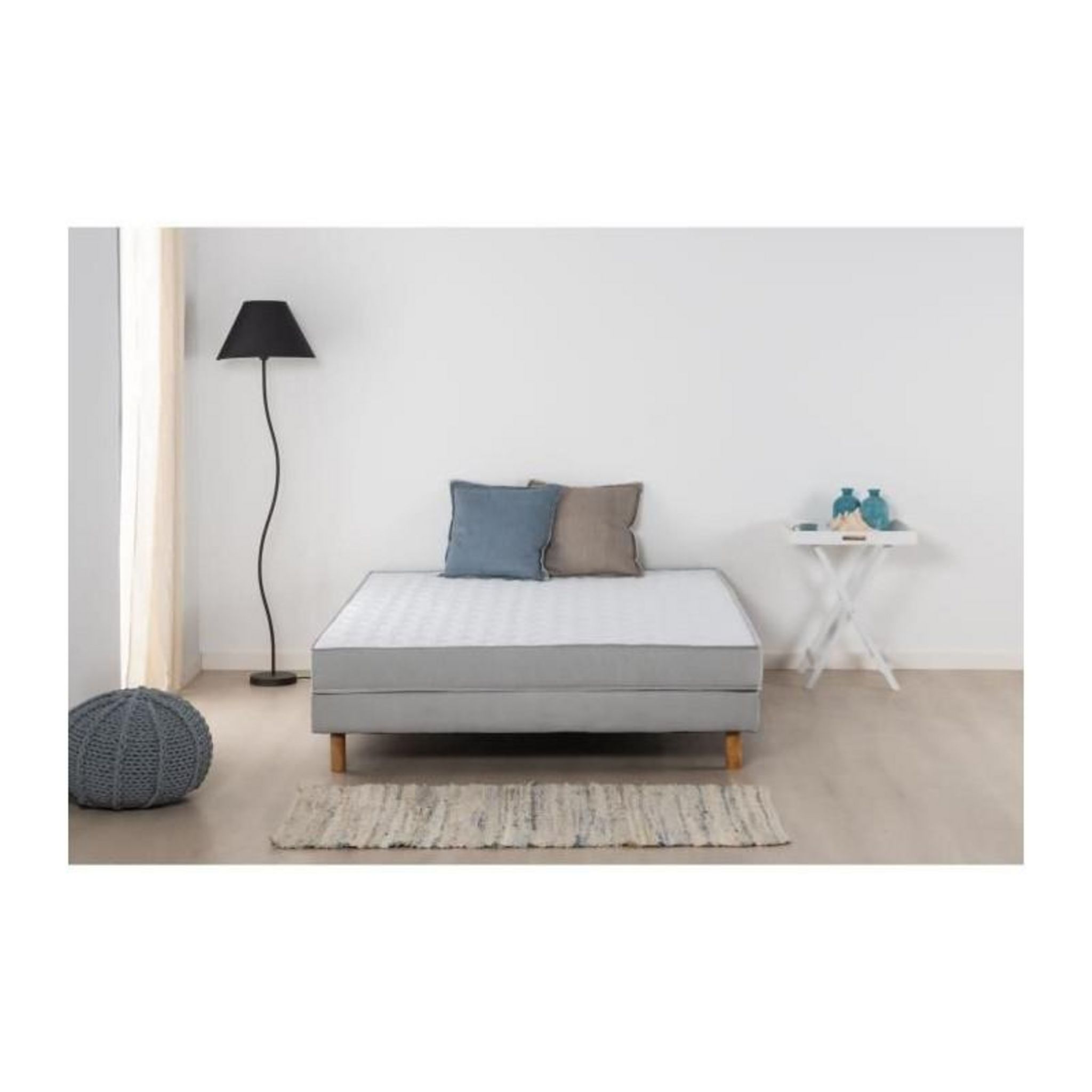Ce pack prêt-à-dormir inclut matelas, sommier et pieds de lit pour une installation immédiate. Les dimensions 140x190 cm conviennent parfaitement aux chambres d'adulte ou d'ado, offrant un espace de couchage généreux sans encombrement excessif.