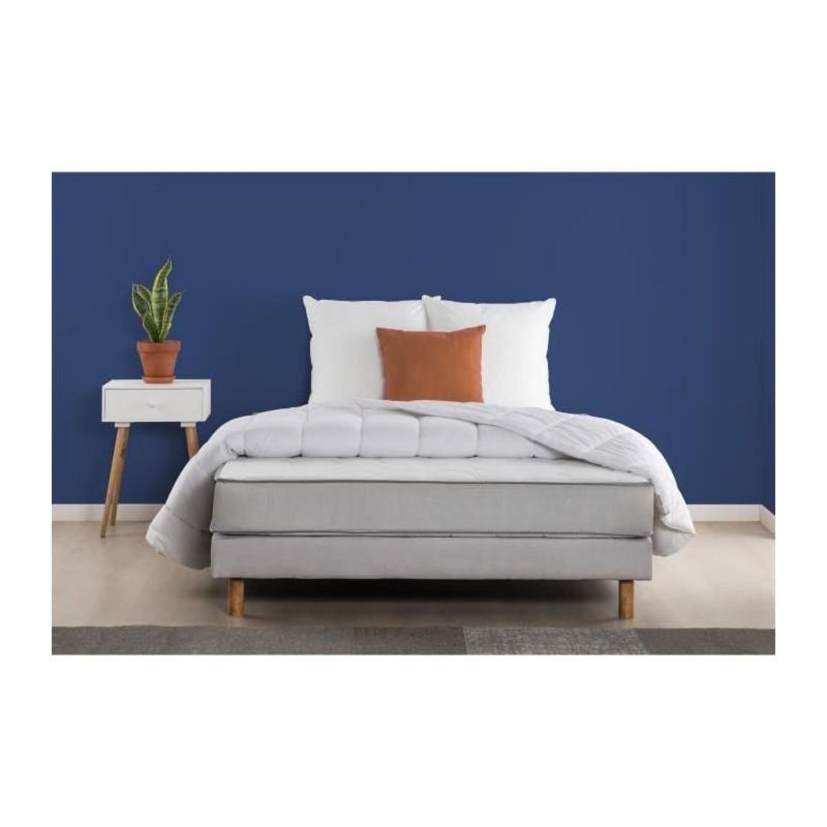 - Ensemble complet incluant un matelas, un sommier, une couette et deux oreillers.