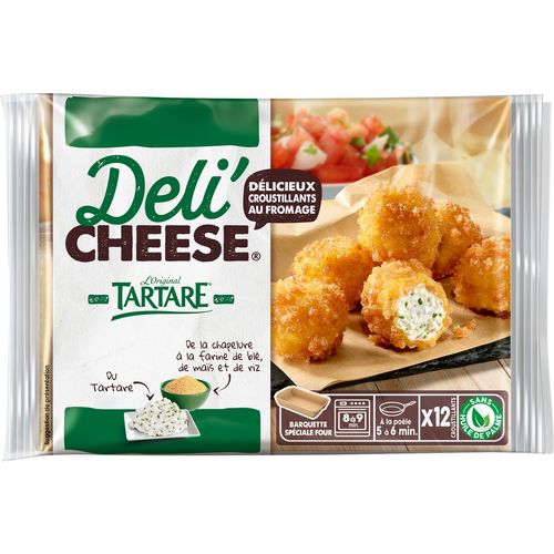Délicieux croustillants à chaud au goût authentique de Tartare Préparation à base de fromage ail et fines herbes au lait pasteurisé enrobée de chapelure, précuite.