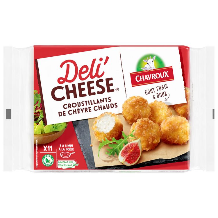Préparation à base de fromage de chèvre au lait pasteurisé enrobée de chapelure, précuite. De délicieux croustillants à chaud, au gout doux et frais de Chavroux