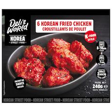 Ingrédients : morceaux de poulet (190g) : viande de poulet 56% (origine Chine), eau, farine de BLÉ 7,5%, amidon de pomme de terre, huile de SOJA, farine de riz,