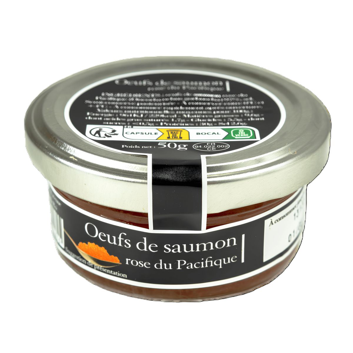 Oeufs de SAUMON rose du Pacifique (Oncorhynchus gorbuscha) 97%, sel.