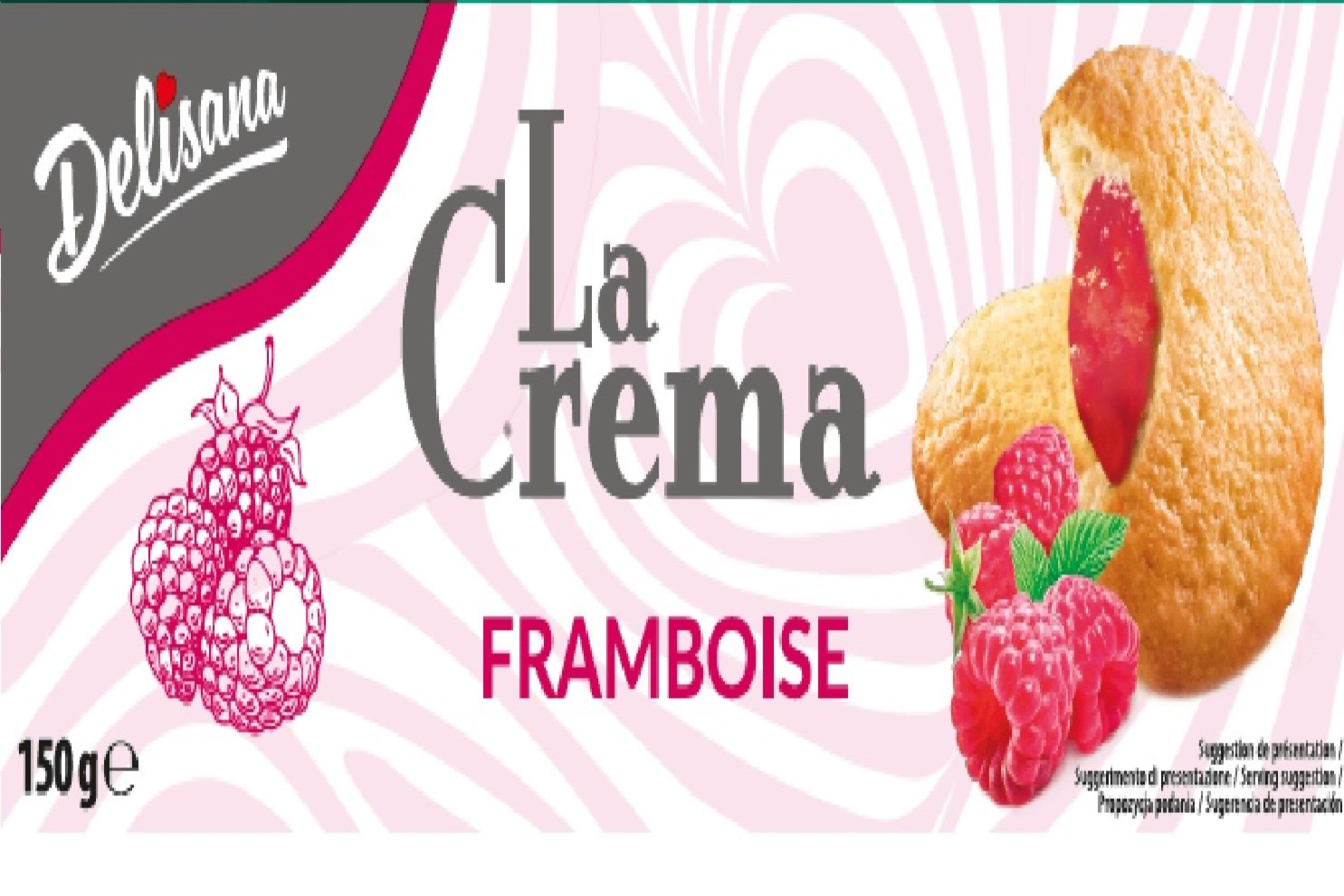 Biscuit sablé avec un fourrage (25%) à la framboise aromatisé