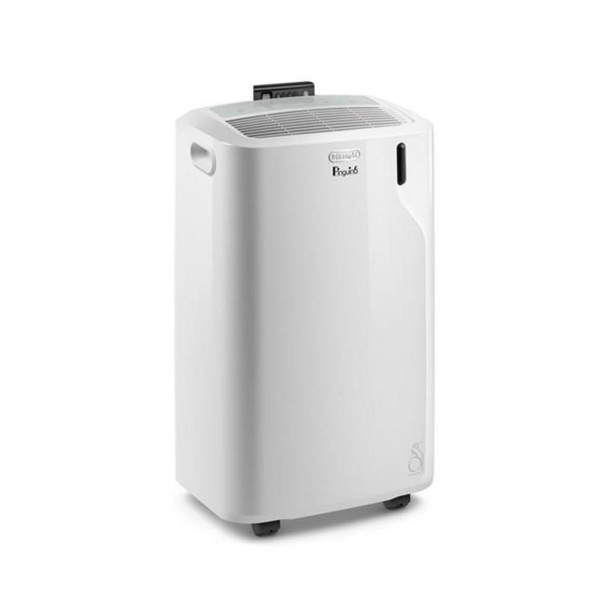 Delonghi PACEM77 Climatiseur mobile monobloc Pinguino Delonghi PACEM77 avec fonctions Ventilateur et Déshumidificateur : humidité supprimée (en mode déshu seul ) : 40 litres/24 h. Système de réutilisation des condensats exclusif. L?utilisation du gaz réfrigérant R290 fait de ce climatiseur un produi