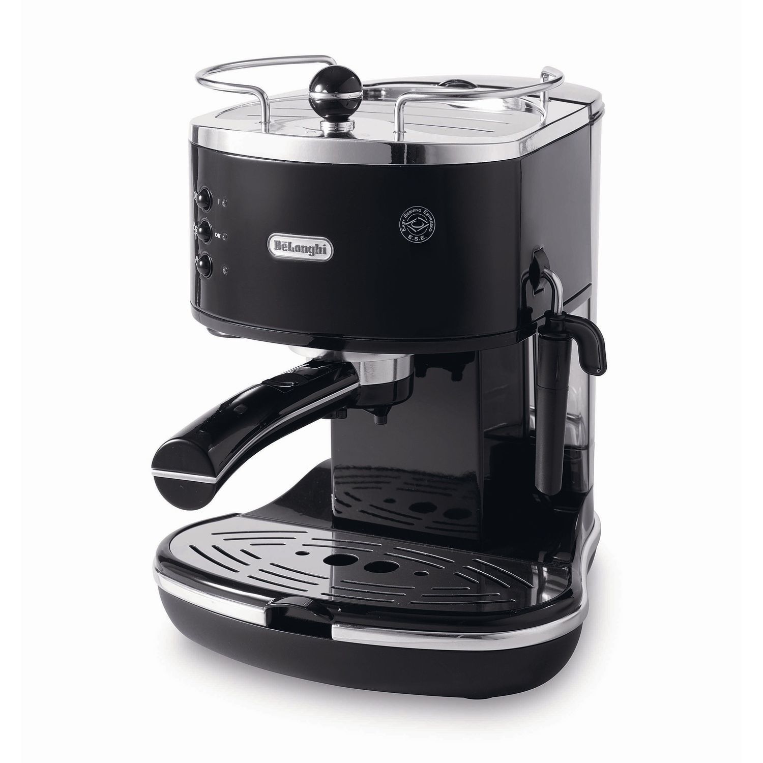 Delonghi vous propose une buse vapeur et la possibilité de verser votre café dans deux tasses à la fois. Cette machine Delonghi fonctionne au café moulu mais également avec des dosettes.