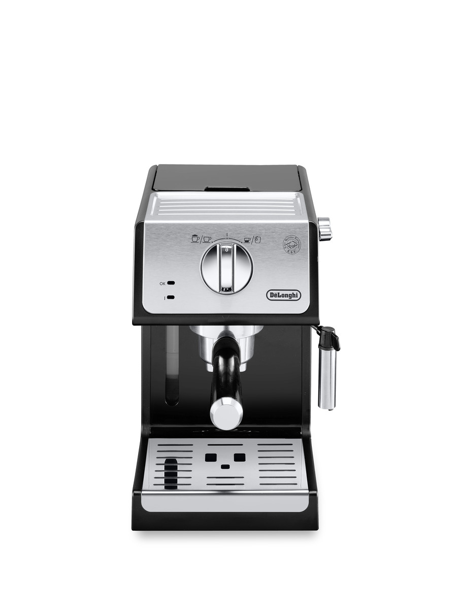 La machine à expresso Delonghi dispose d’une puissance de 1100W, d’un réservoir de 1,1L amovible et d’une pression de pompe de 15 bars.