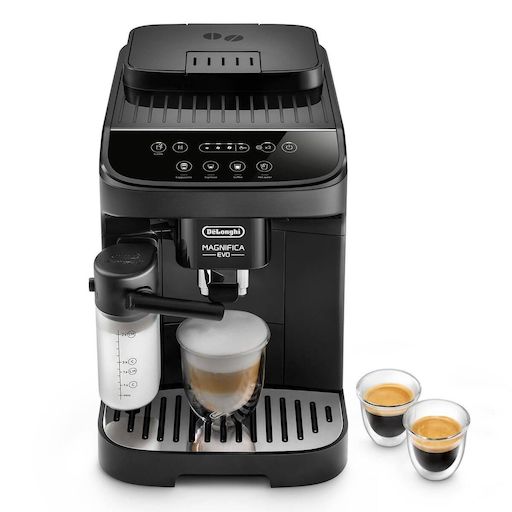 Delonghi ECAM293.52B Robot café Magnifica Evo DeLonghi ECAM293.52B. Magnifica Evo est la nouvelle gamme d'expresso broyeurs De'Longhi au design moderne pour habiller toutes les cuisines ! Son nouveau panneau de commande tactile avec icones est intuitif et simple d'utilisation. Toutes les boissons sont en accès direct avec touches dédiées. Personnalisez l'intensité, la longueur en tasse et la température de toutes les boissons disponibles en toute simplicité. 3 préparations en accès direct : A chaque moment de la journée son café ! Magnifica Evo propose 2 préparations café différentes, chacune respectant une extraction spécifique et révélant des arômes différents. Mais également la préparation « vapeur & eau chaude » pour élaborer votre thé ou vos boissons lactées en toute simplicité. Entretien simplifié : Avec sa grille égouttoir amovible, entièrement démontable et compatible lave-vaisselle, pour un entretien toujours plus simple. Nouvelle carafe LatteCrema Hot : La technologie exclusive LatteCrema Hot assure la préparation optimale de la mousse de lait pour un Cappuccino parfait : onctueux, dense, à la parfaite température...Jusqu'à la dernière goutte !
