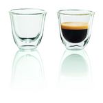 Delonghi vous propose 2 tasses d'une contenance de 60 ml avec double parois pour prévenir des brûlures. Cet ensemble est compatible lave vaisselle.