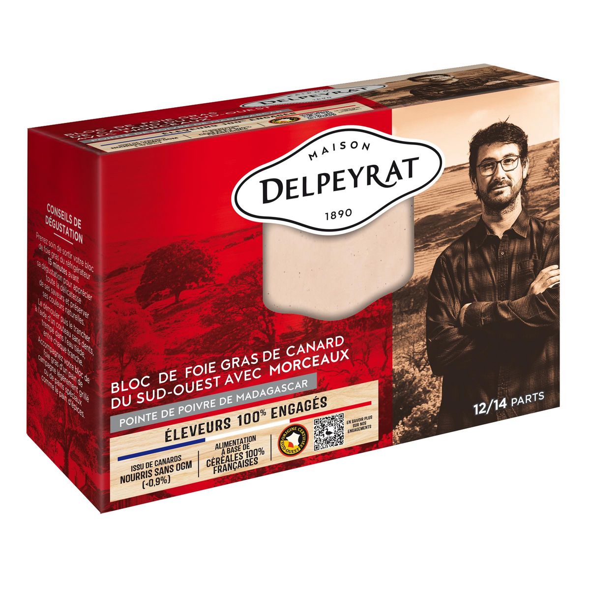 Bloc de foie gras de canard avec morceaux sans OGM au poivre de Madagascar