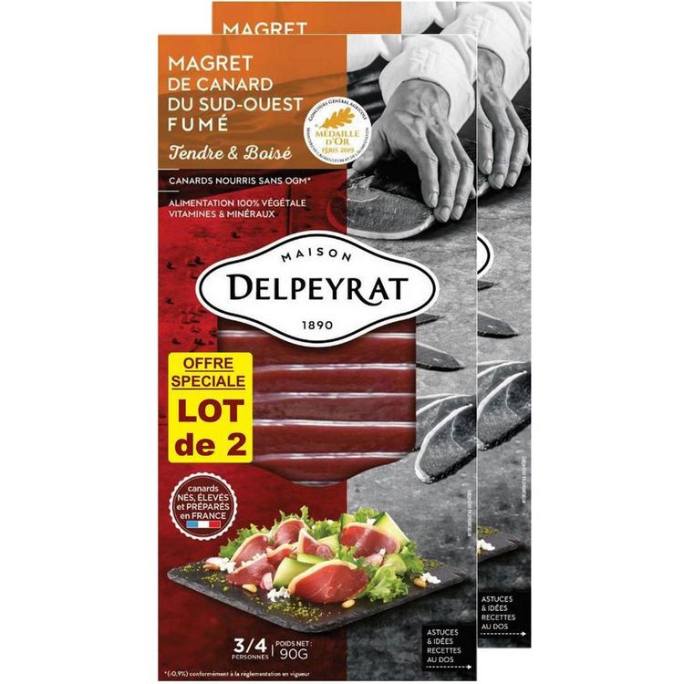 Lot 2 Magret de Canard du Sud-Ouest Fumé au bois de Hêtre Prétranché Lot x 2 Magret de Canard Fumé IGP Sud-Ouest 180g PF