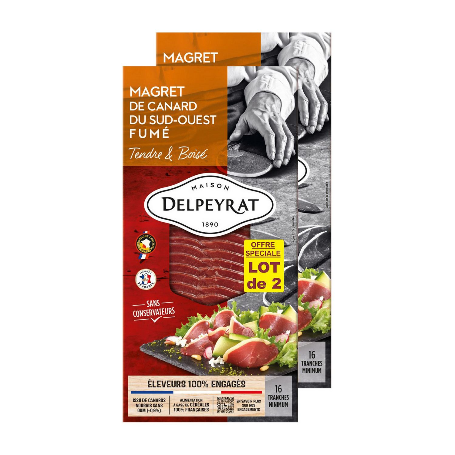 Lot 2 Magret de Canard du Sud-Ouest Fumé Tranché (origine :France)