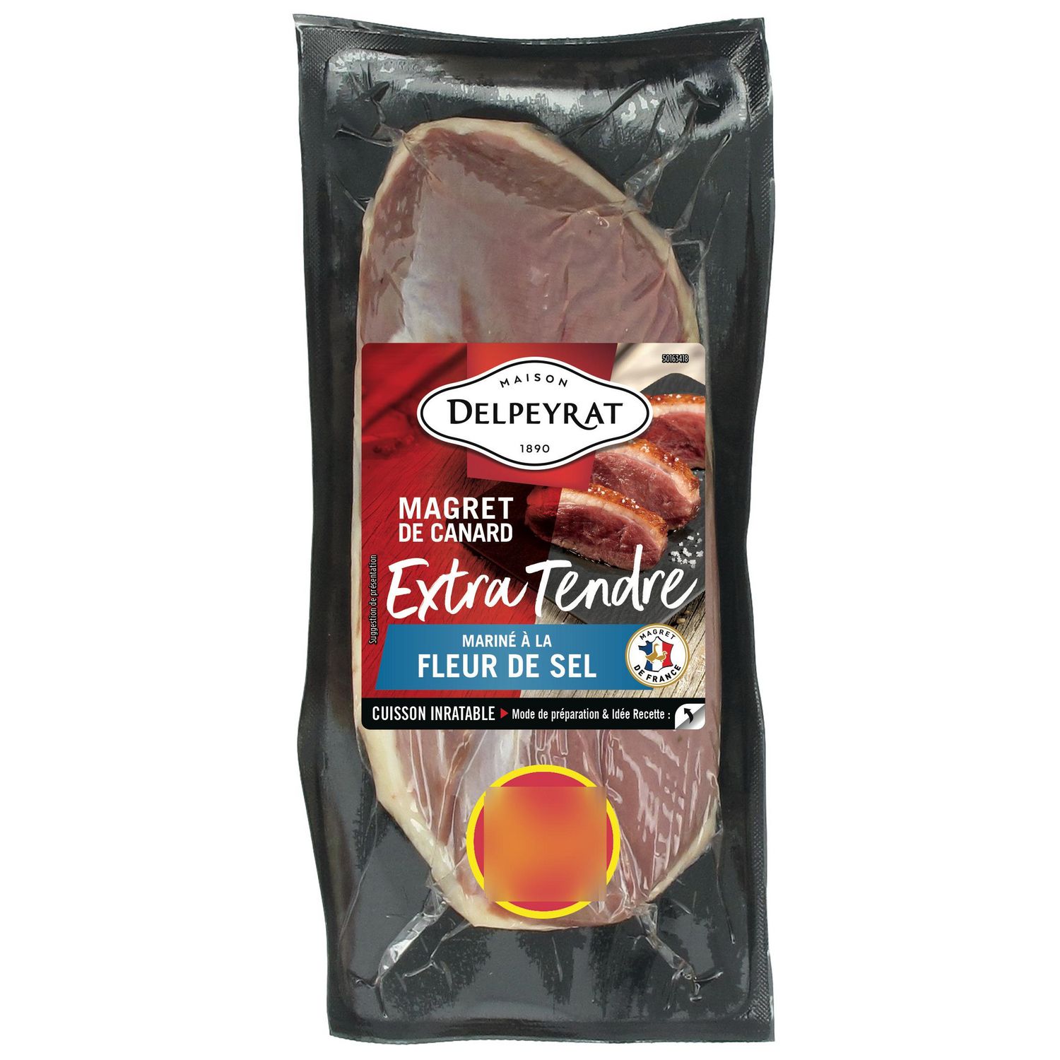 Ingrédients : Ingredients:Magret de canard 92%,eau,sel,fleur de sel 0,2%,conservateur:vinaigre tamponne,jus d'acerola,antioxydant : extrait de romarin