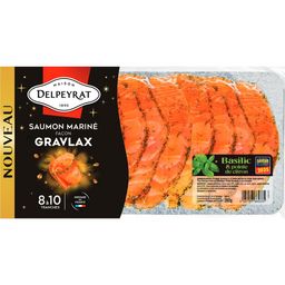 Ingrédients : SAUMON atlantique (salmo salar) 93 %, basilic 2.8 %, sel, sucre, poivre, arome naturel de citron 0.3% - Trace éventuelle de sesame et de moutarde