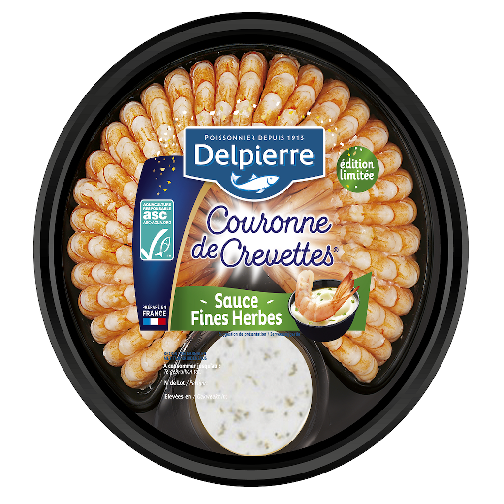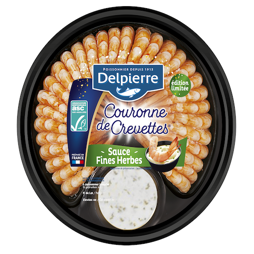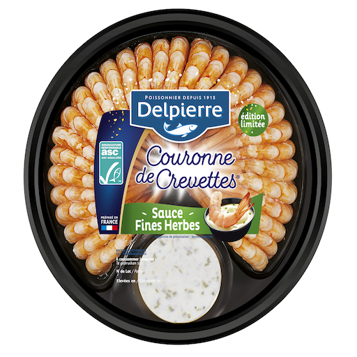 Couronne de crevettes décortiquées cuites réfrigérées et sauce fines herbes