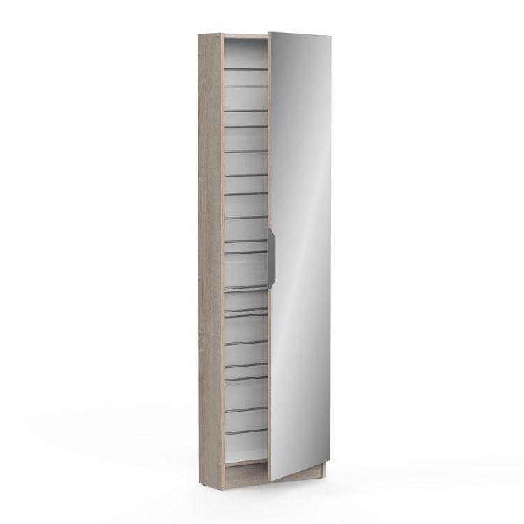 Armoire a chaussures ZAPATERO - 12 Paires - Décor Chene et Noir - 1 porte avec miroir - L50 x P18 x H200 cm - CBA MEUBLES