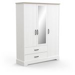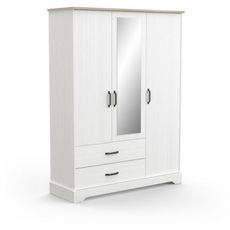 Apportez une touche d'élégance rustique a votre chambre avec l'armoire COTTAGE. Conçue en mélamine blanche structurée et décor chene Kronberg, elle offre une finition soignée avec chants ABS épais. Dotée de 3 portes dont une avec miroir, 2 tiroirs spacieux et un intérieur bien pensé (2/3 penderie, 1