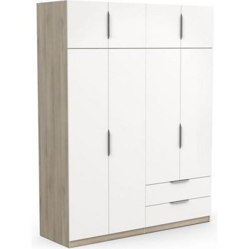 Armoire de chambre - DEMEYERE - GHOST - 8 portes - 2 tiroirs - Blanc et chene kronberg