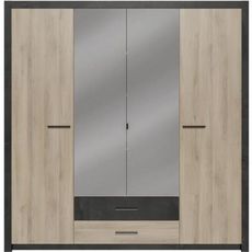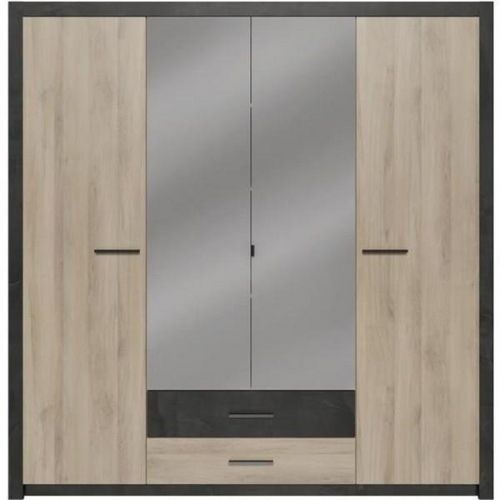 En savoir +COLORADO Armoire 4 PO / 2 T Chene Kronberg / Sidewalk de dimesions L 198 x H 203,1 x 56,6 cm. Epaisseur 15 mm. Montants MDF enrobé. 2 miroirs a bords rodés 3 mm / H 1519 mm x L 419 mm. Coulisses a bille métal 17 mm. Chants droits. Charniere métal D 26 mm. Tiroir hauteur de 120 mm. Raidisseur métal de tiroir